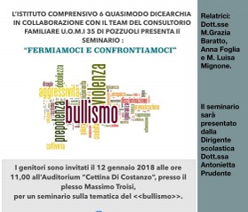 Progetto di contrasto al bullismo presentato dall' I.C.6°QUASIMODO DICEARCHIA e lo staff del Consultorio familiare U.O.M.I. del distretto sanitario 35 di Pozzuoli