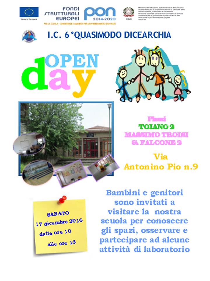 NataleRappresentazione Presepe vivente 19-20-21 dicembre 2016 Rappresentazione Presepe vivente venerdì 18 dicembre 2015 ----------------------------------------------------- Piazza a MareLaboratori in piazza 3 dicembre 2016 -----------------------------------------------------Open daylocandina open day 2017 Locandina open day 2016 scuola Borsellino Locandina open day 2016 scuola Toiano 1 Locandina open day 2016 scuola Toiano 2Locandina open day 2016 scuola secondaria I gradoManifestazione Open day sabato 26 novembre 2016Manifestazione Open day sabato 23 gennaio 2016 Manifestazione Open day sabato 19 dicembre 2015
